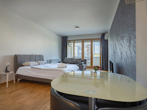 Izuzetno moderan studio apartman na Novom Beogradu kod Piramide, jednog od prvih modernih tržnih centara u Beogradu. Parking oko zgrade besplatan po principu "ko prvi" a parking u privatnoj garaži se doplaćuje. Dobrodošli!!!